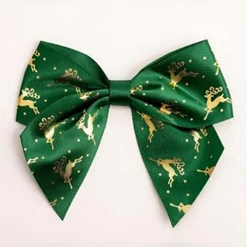10cm Satin Bows (Self Adhesive) 6pcs Reindeer Green/Gold Foil