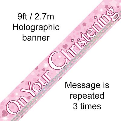 9ft Banner Christening Pink Holographic Dot