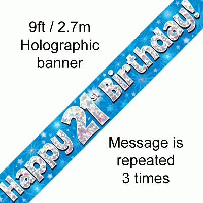 9ft Banner Happy 21st Birthday Blue Holographic*