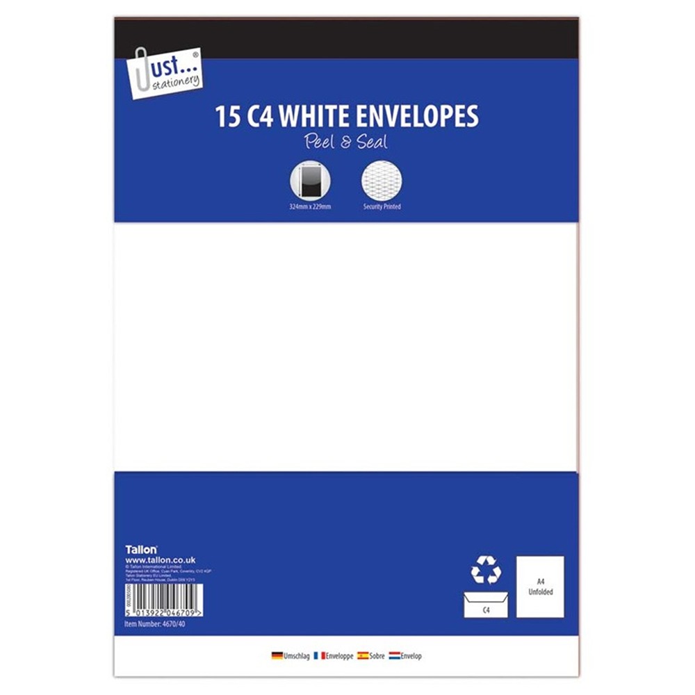 Envelopes 15 x C4 White Peal & Seal – 80gsm – 4670/48 – Tallon
