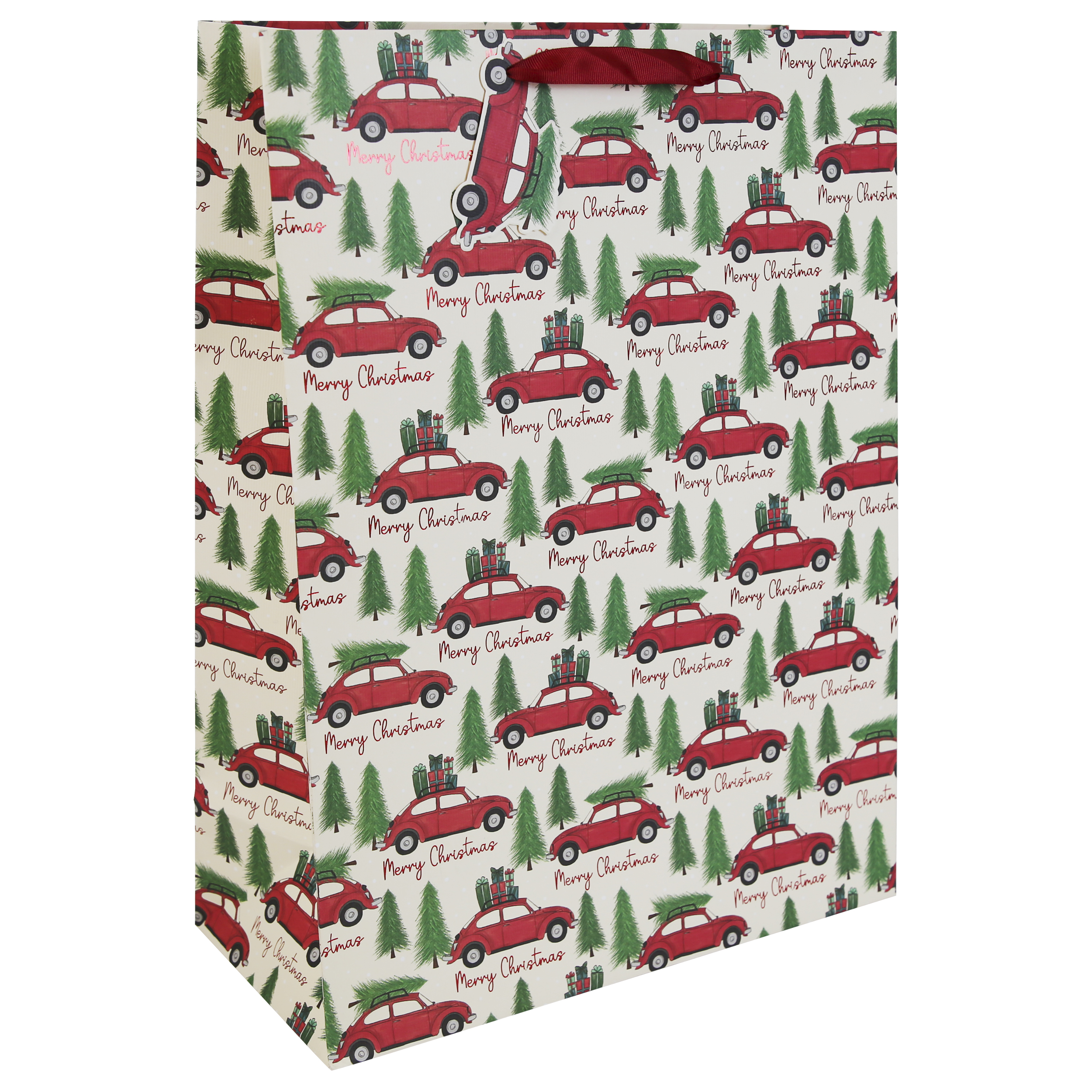 EuroWrap – Xmas Car White Kraft XL Bag – 12pcs – X-36100-1WC