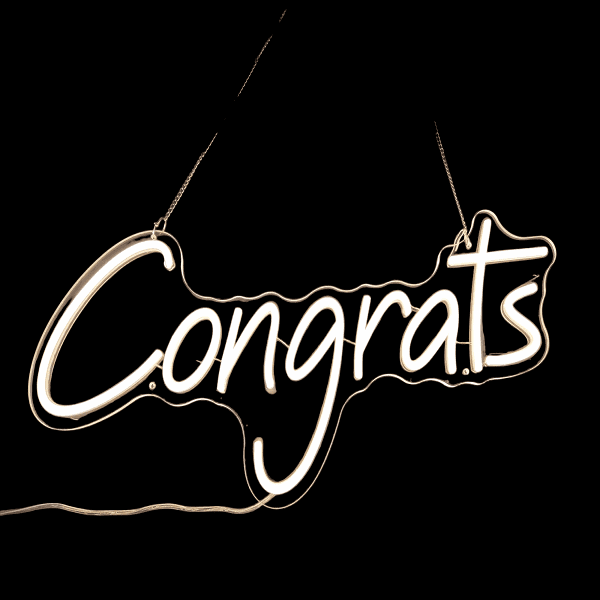 Neon Sign – White – Congrats – 63.5 X 25.5 *