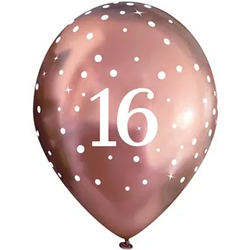 Oaktree – 11inch Latex Balloons Sparkling Fizz Rose Gold 16th x 6pcs- 664067